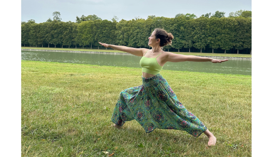 Cours de yoga au parc de Noisiel les weekends, pour respirer, bouger en conscience et prendre soin de nous dans un cadre apaisant et verdoyant, avec la Marne juste à côté.